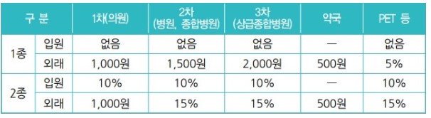 의료 급여의 경우 특정 금액을 지원받는 게 아닌 의료기관에서 진찰, 검사, 약제, 치료재료 지급, 처치, 수술, 입원 등 의료 목적을 달성하기 위한 조치가 필요했을 때 지급됩니다. 다음표에 기재된 본인 부담금을 제외하고 의료급여기금에서 나머지 비용을 지원합니다.